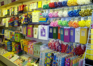 We have a beautiful new gift wrap display of bags, roll wrap, tissue, and bows.